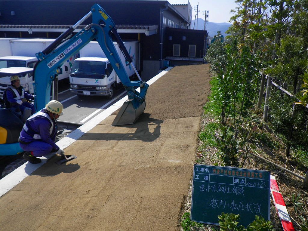 こんな感じで、元請けさんが法面を整形したあとに