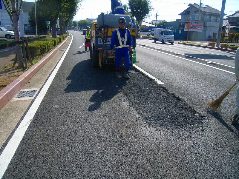きれいに清掃して乳剤を散布し、舗設します