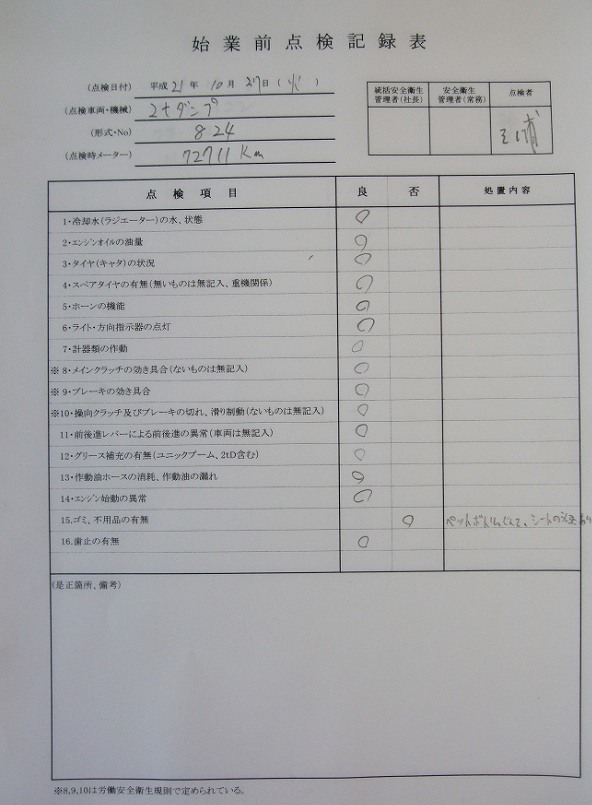 車両は毎日、「車両管理簿」を記入してますが