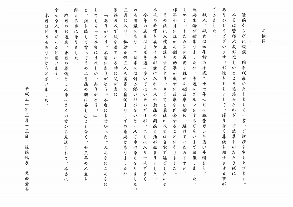 お通夜、葬儀と参列された皆様、翌日より実家や会社に