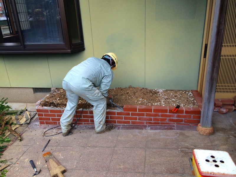 縁石も取替えて、砕石も厚くします