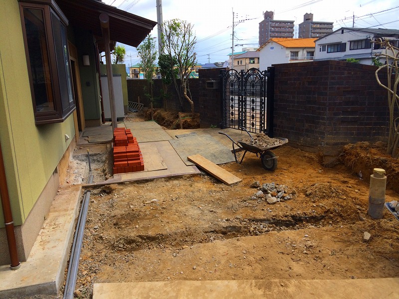 補足材を入れて地盤をきれいに平坦に均します