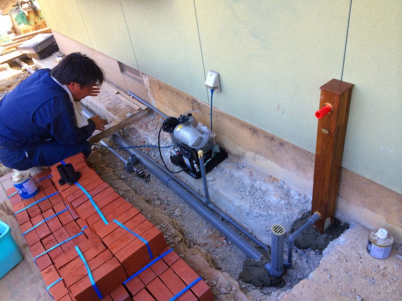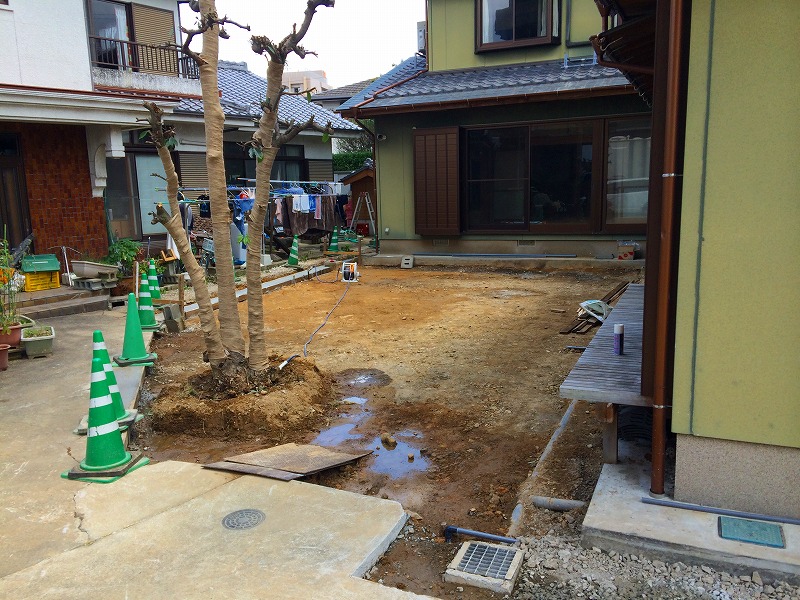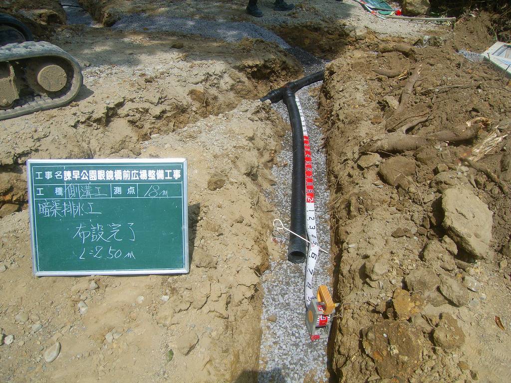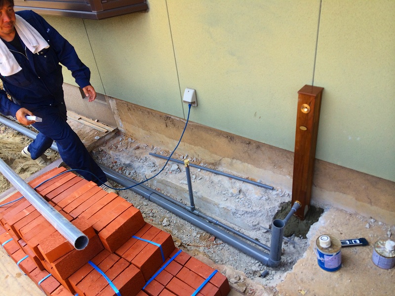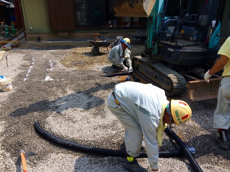 まずは地盤に暗渠排水を設置し