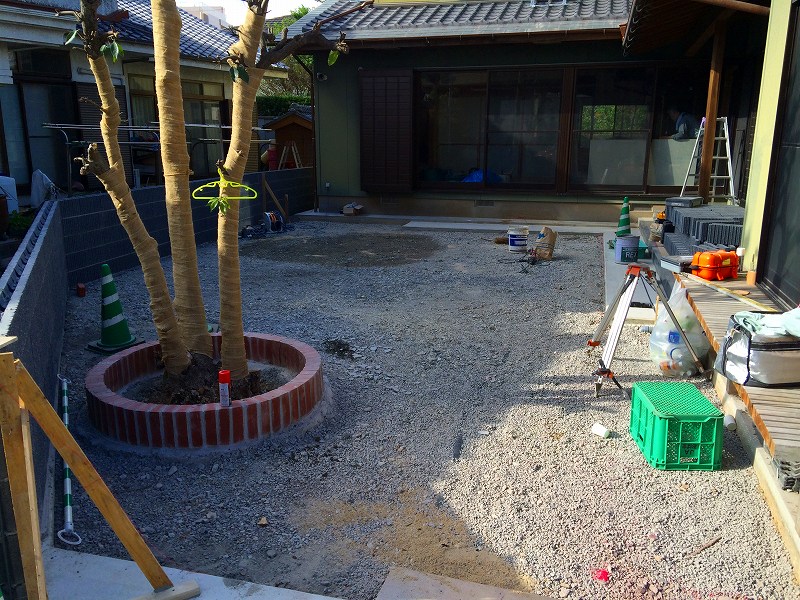 その上に改良した真砂土を敷き均します