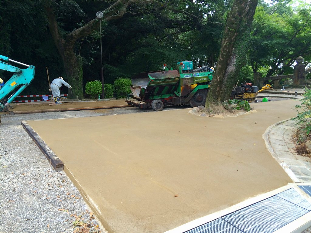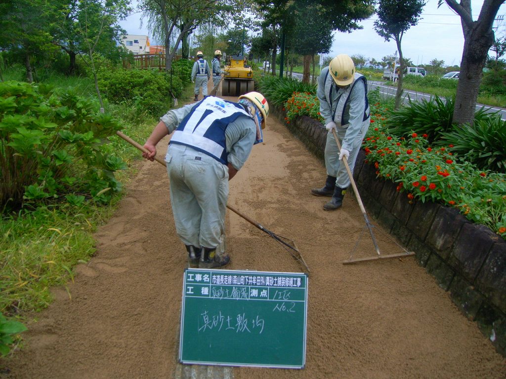 透水性土系舗装での改修工事の