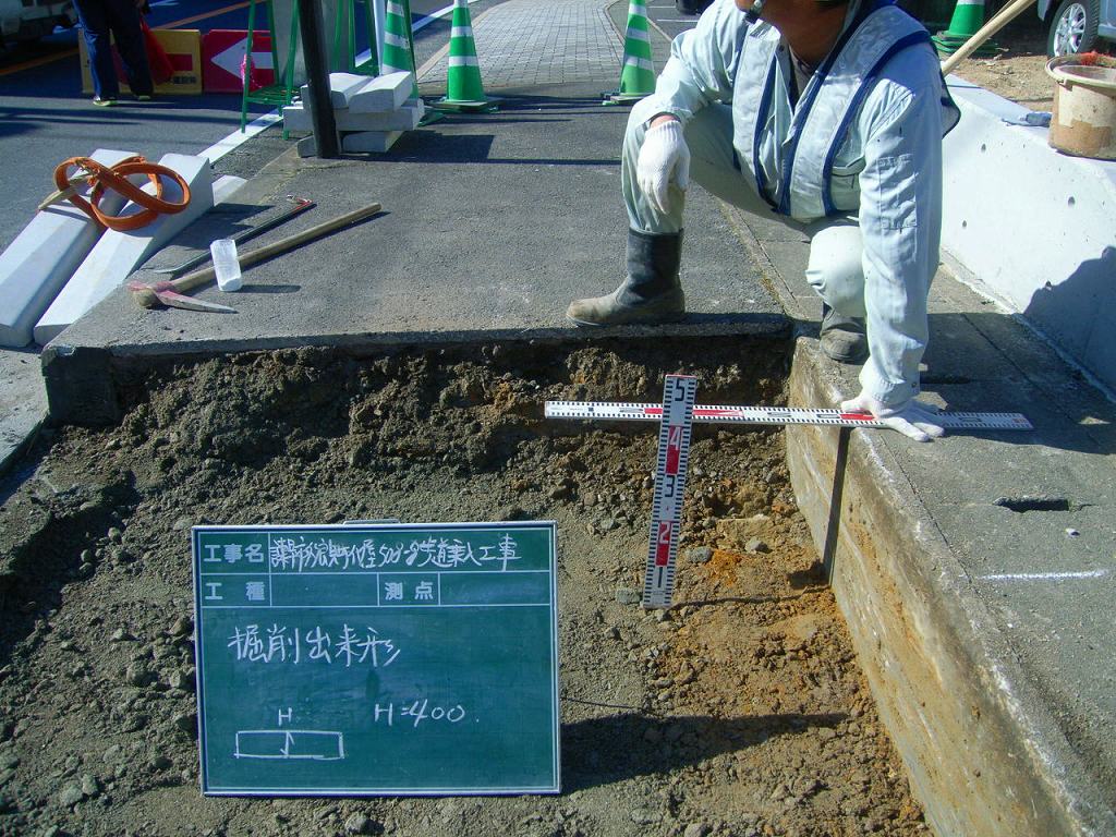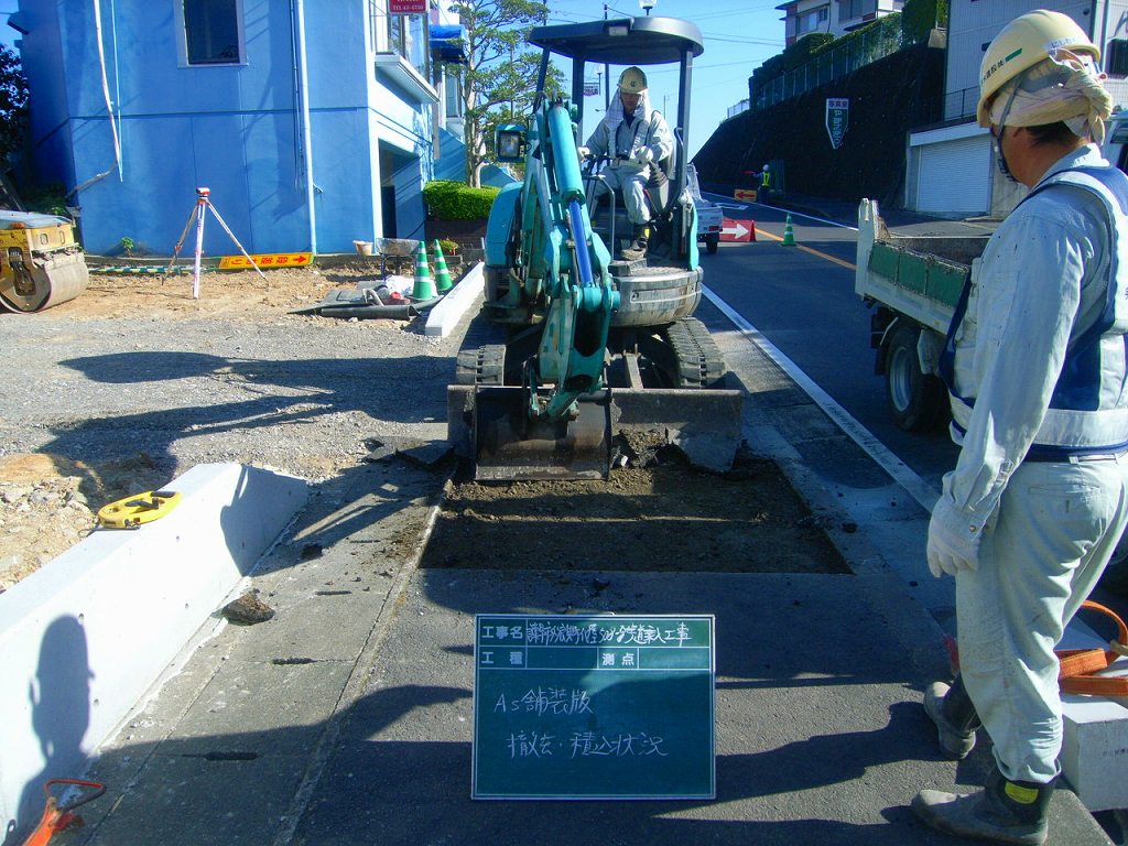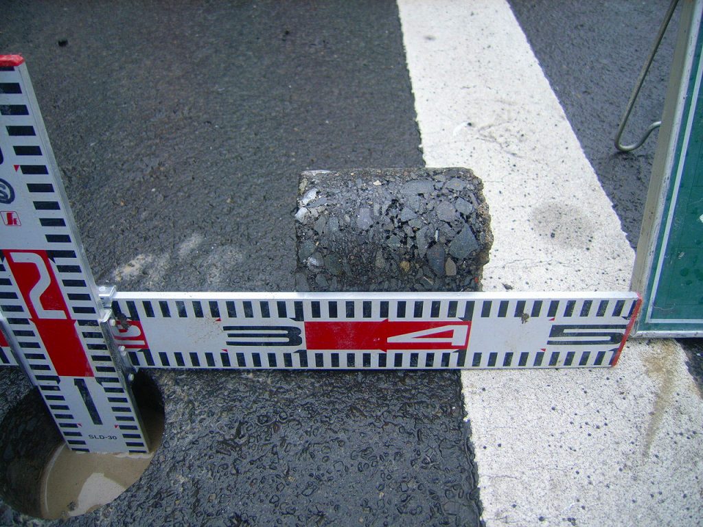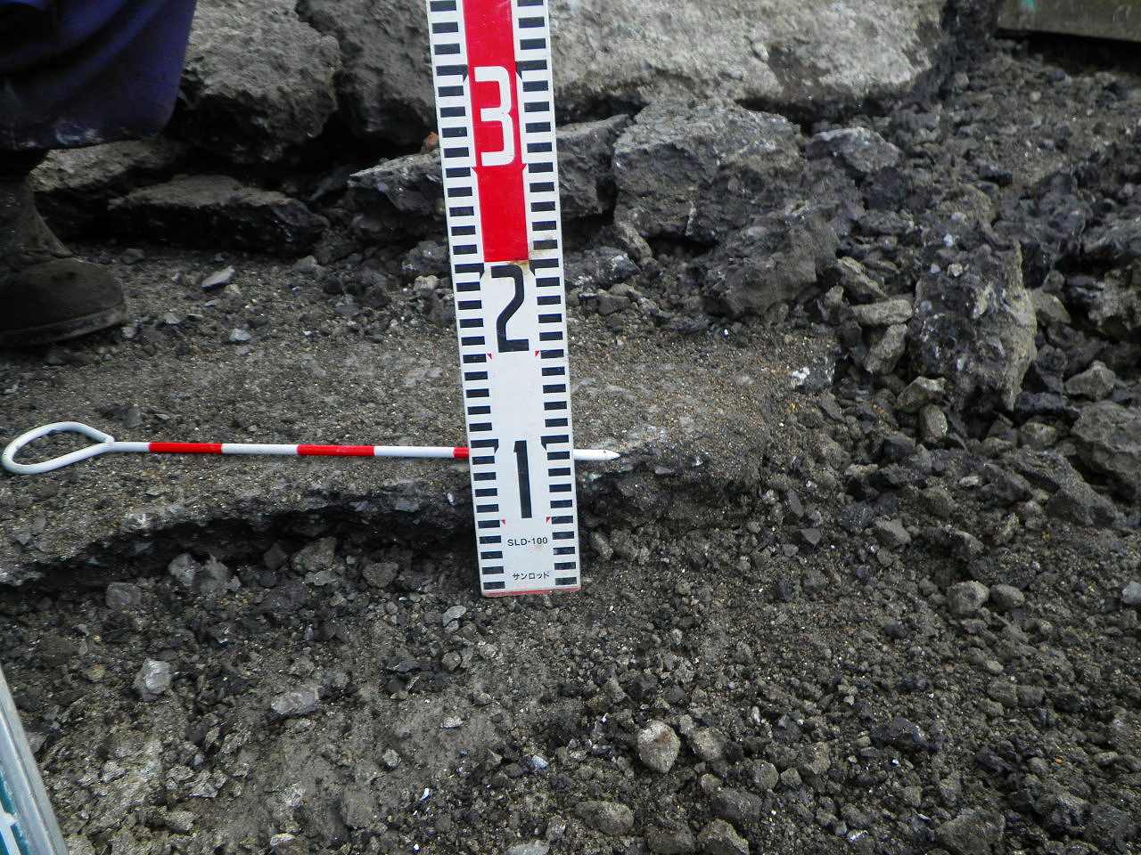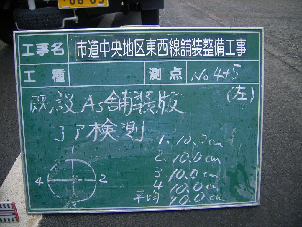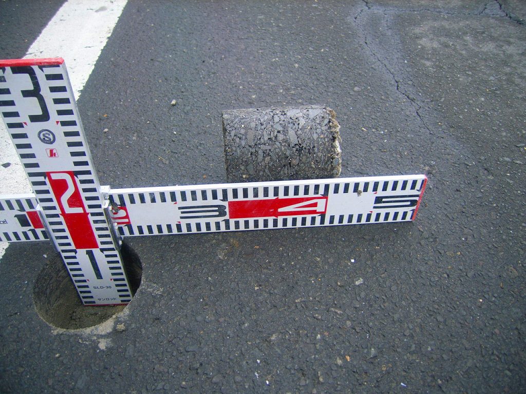 事前にアスファルトの既設厚を確認してからの作業です