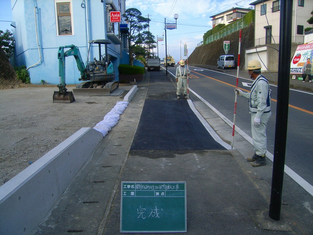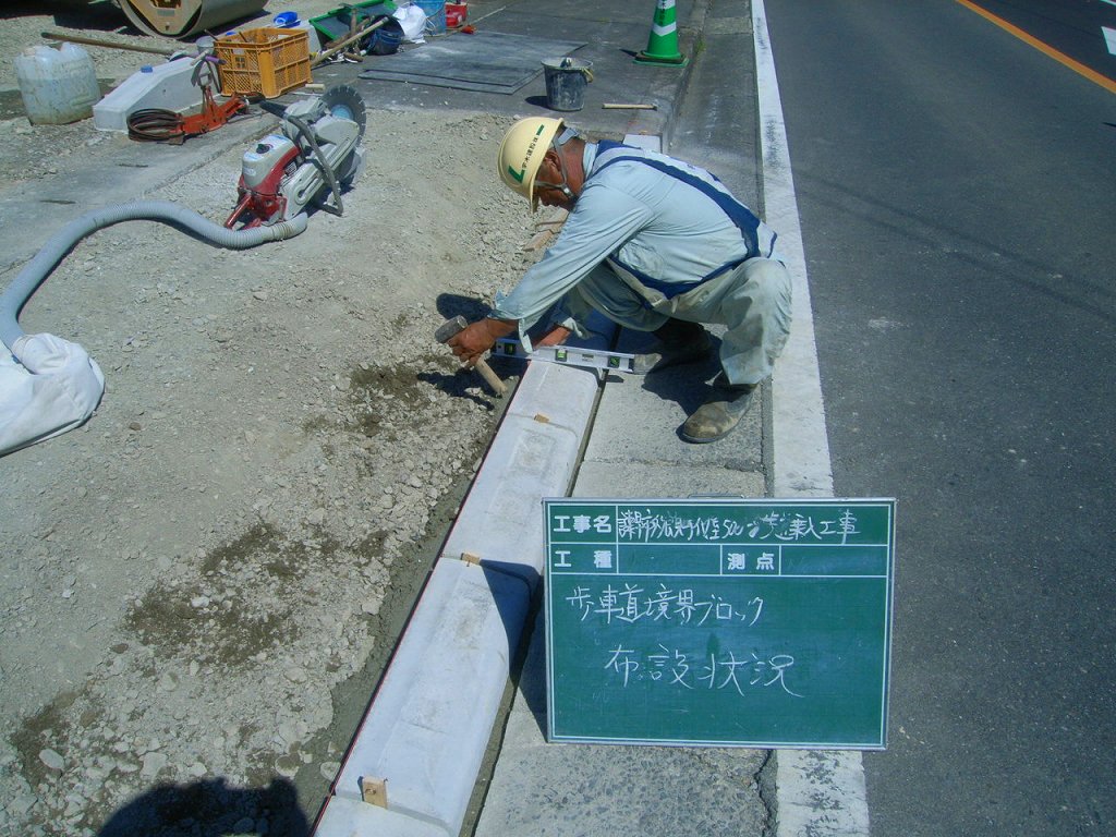 歩道に車の出入り口を設置する工事です