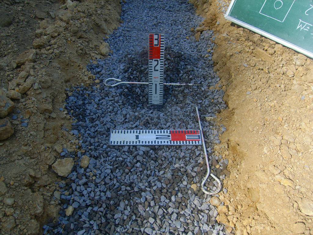 単粒砕石で埋戻して、路盤工を施工