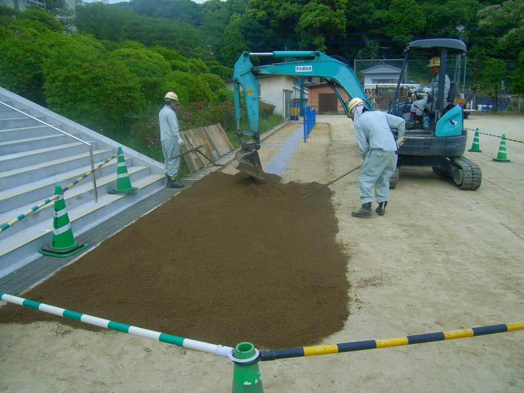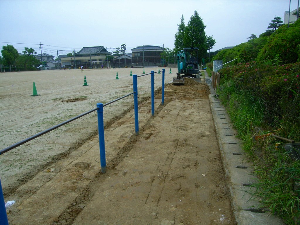 なので、既存グランド土を7㎝掘削し