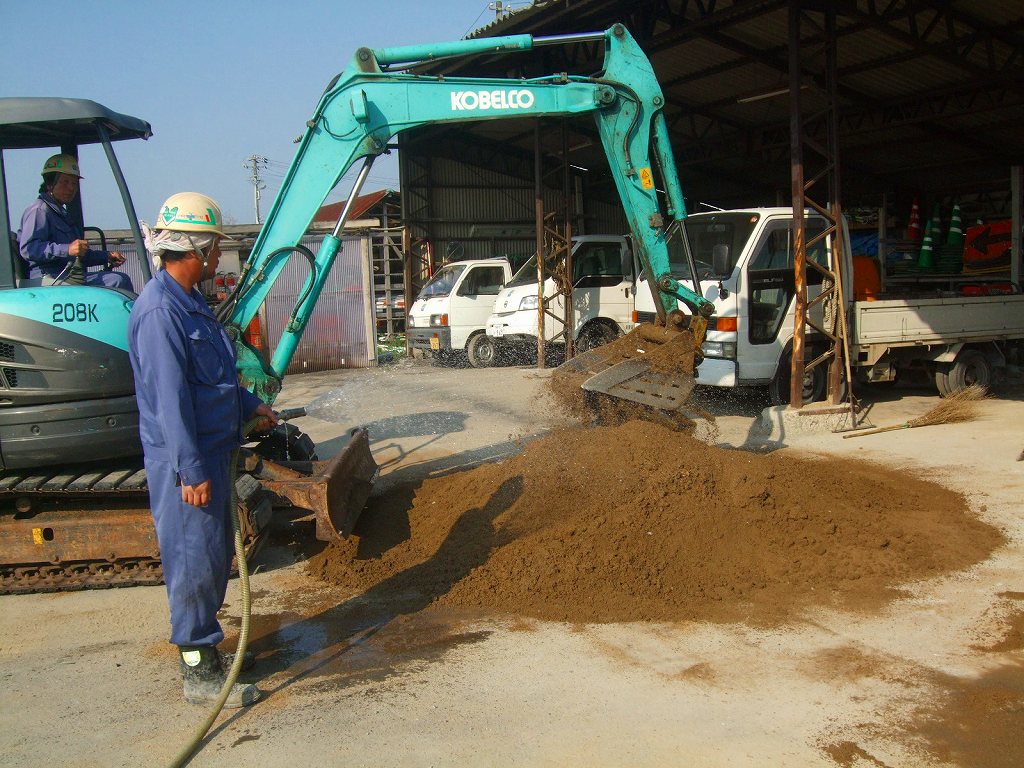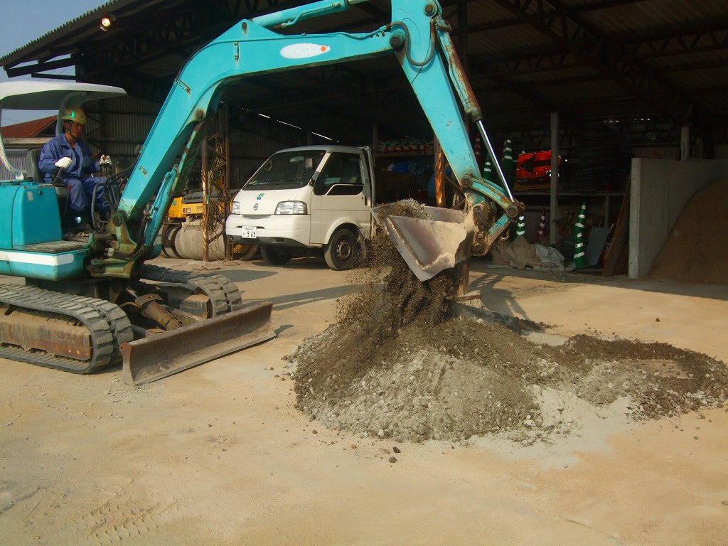 路盤材に固化材と団粒化材を混合し