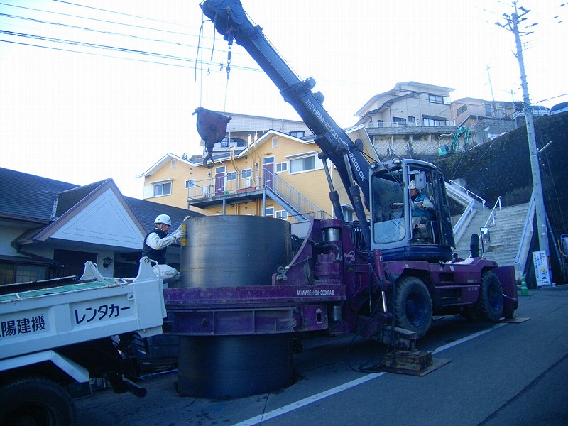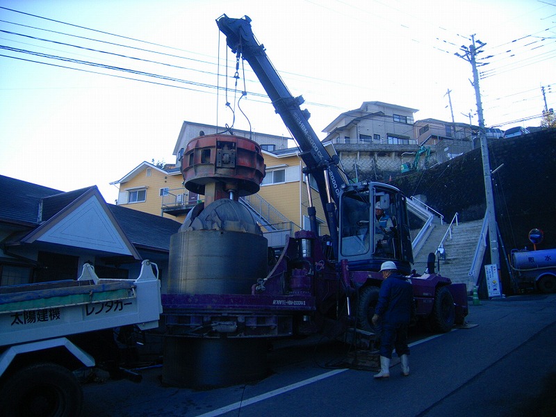 ケーシング(鉄の円柱)を建込みます