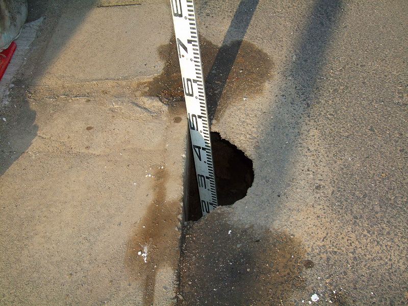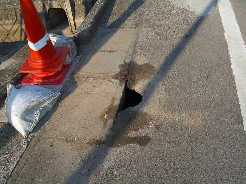 国道で事故が起きて道路にキズが入ったので
