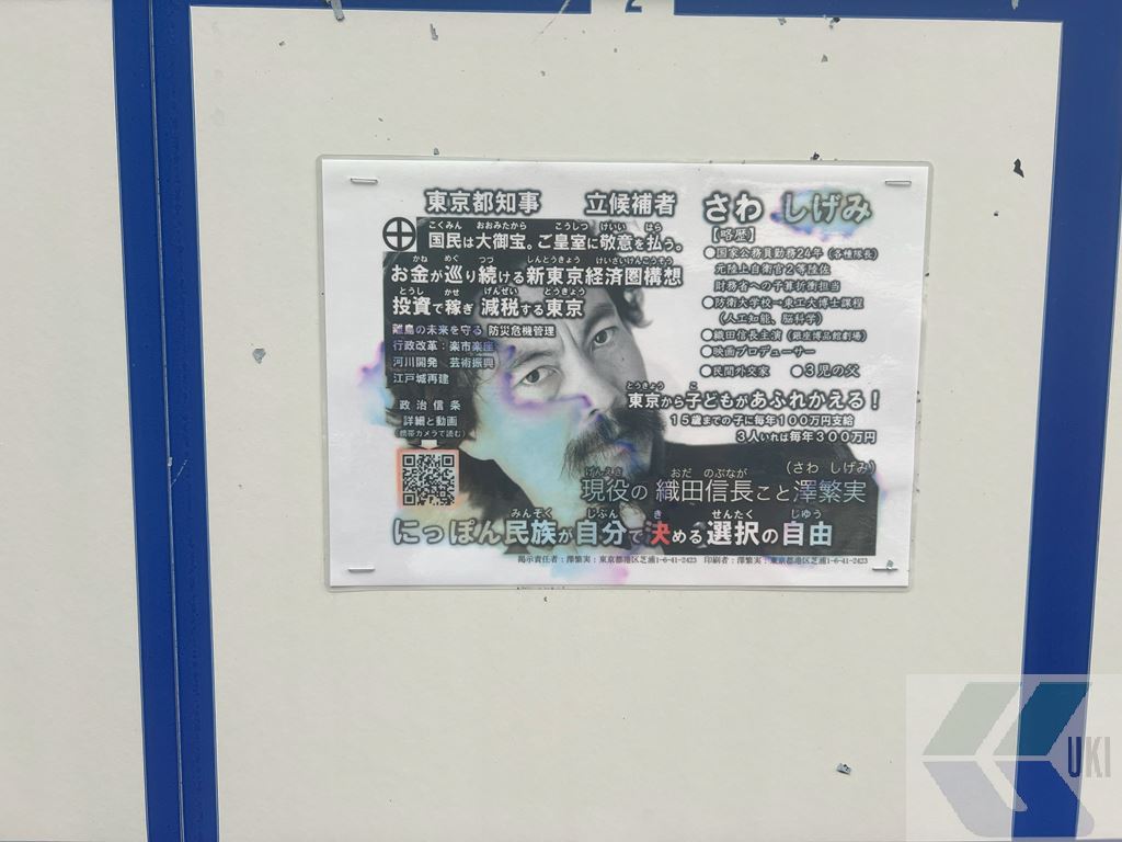 東京都知事選の候補者掲示板が残っていたので