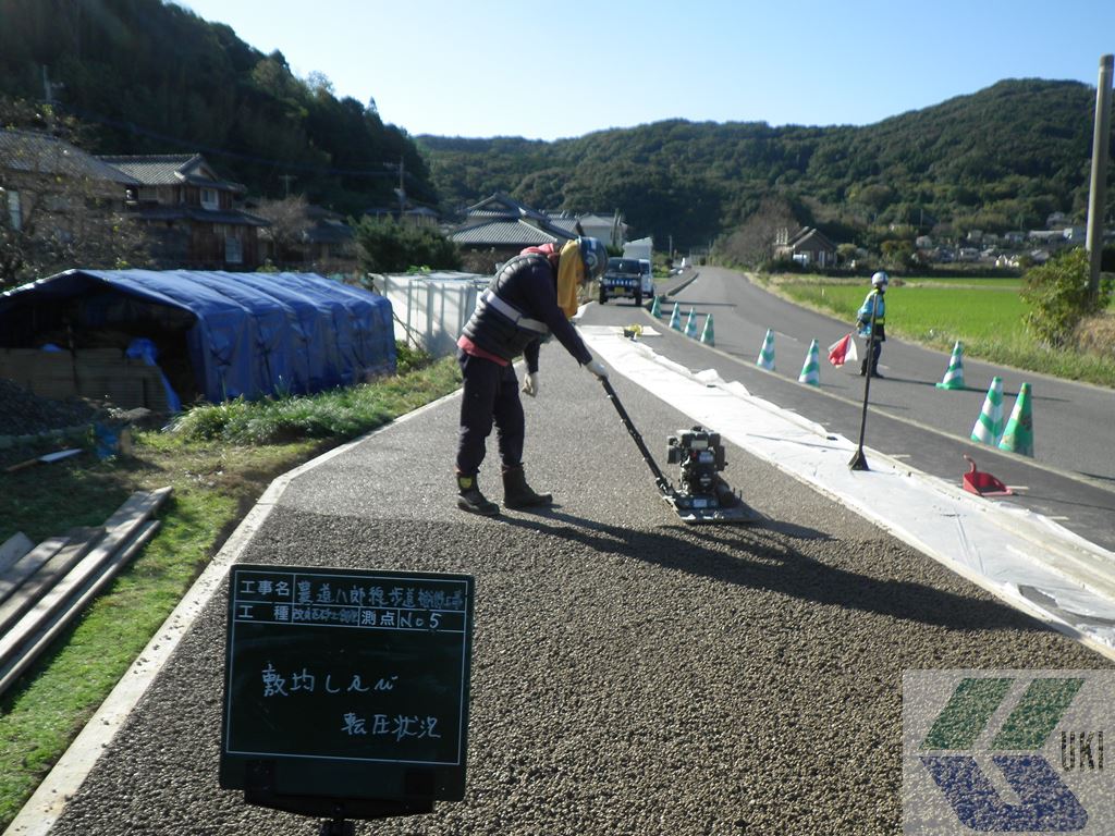 歩道の真砂土を掘削して舗装する工事です