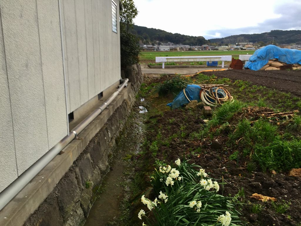 ここが軟弱地盤で排水管の塩ビパイプを