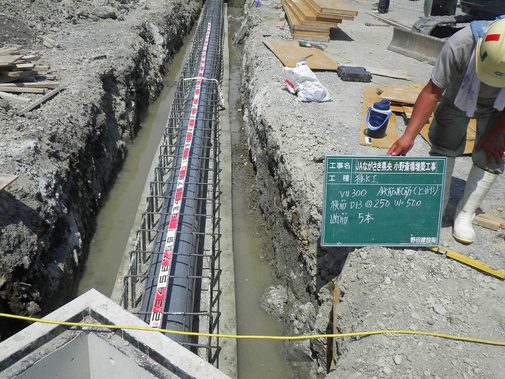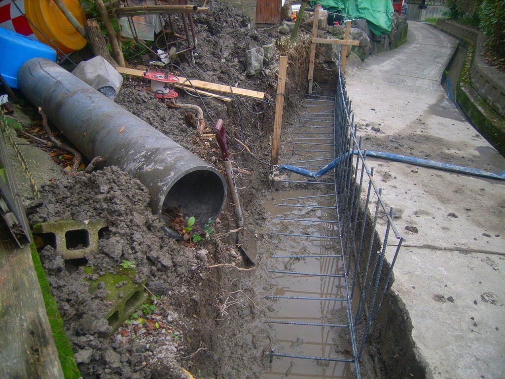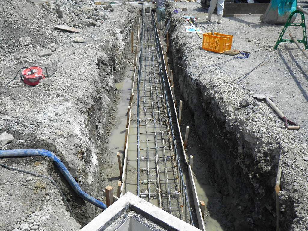 そして塩ビ管を設置して、また鉄筋を組んで型枠設置