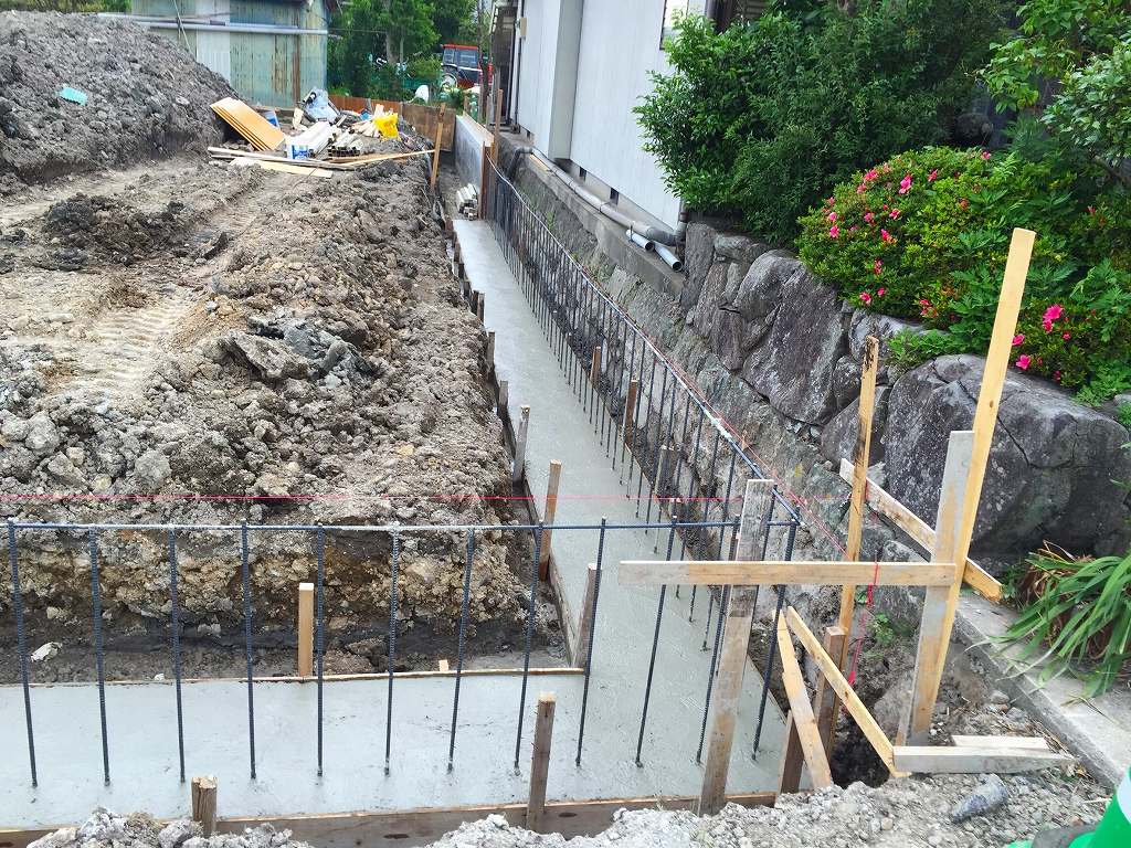 鉄筋を組んで基礎コンクリート打設