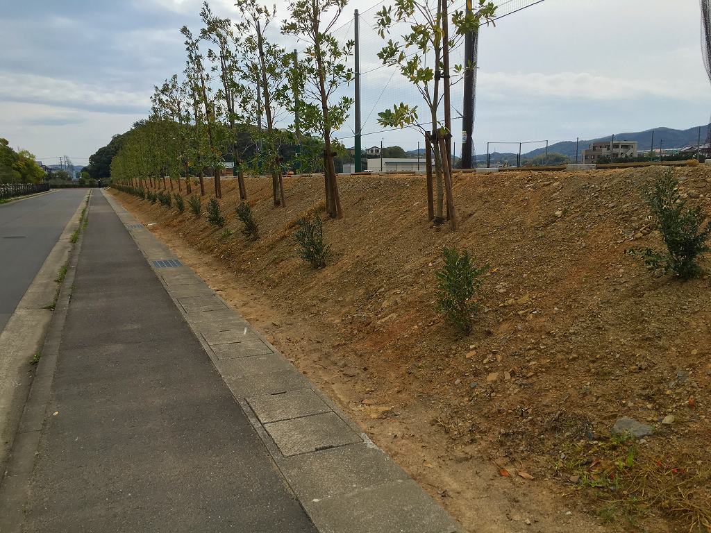 植栽工事で植木が植えてあり昨日より